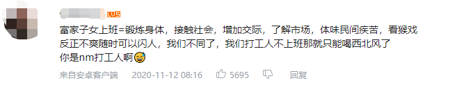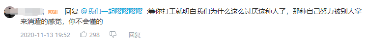 “等你打工就明白我们为什么这么讨厌这种人了,那种自己努力被别人拿来消遣的感觉,你不会懂的”
