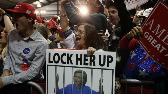 2016年大选时,特朗普与希拉里之间的竞争白热化时,特朗普的支持者曾经用“把她关起来!”这句口号来攻击希拉里。并且之后,经常在各种竞选活动中被特朗普的粉丝喊出来。