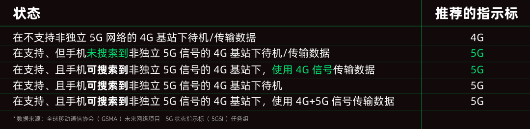 而 GSMA 在 5G 信号的标准中就标明了,只要手机所处的通信基站有发射 5G 信号的功能,那么即使实际连接的是基站的 4G 单元,也可以显示 5G 的信号标。