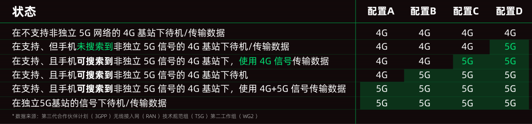 同样支持这个做法的还有另一个国际通信组织 3GPP 。在 3GPP 的 5G 信号标准 “ C ” 和 “ D ” 两个配置中,也推荐手机厂商们这么搞。
