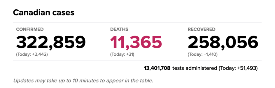 迄今为止,加拿大约有52,000例活动病例,累积病例超过315,000例。