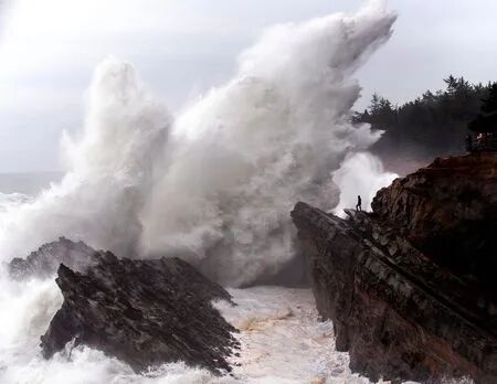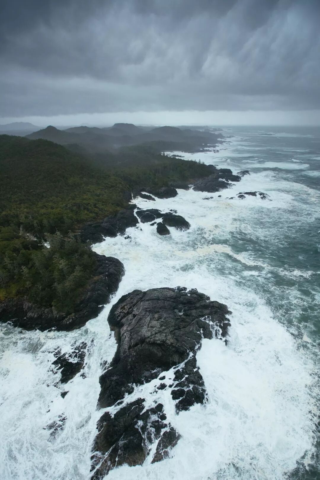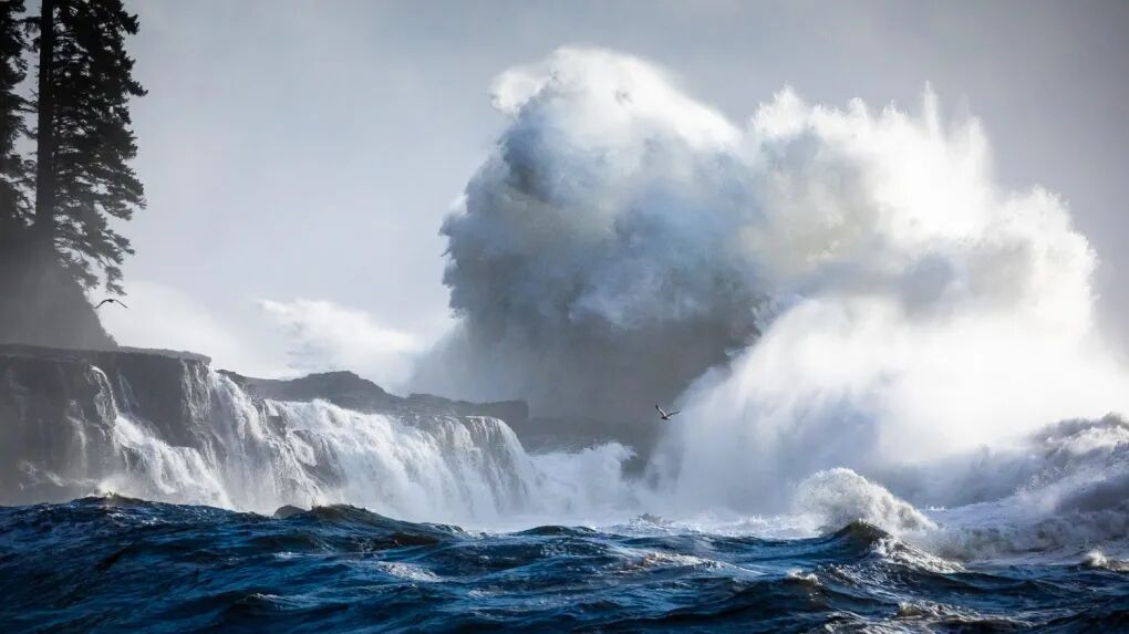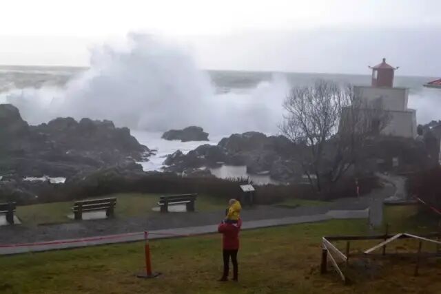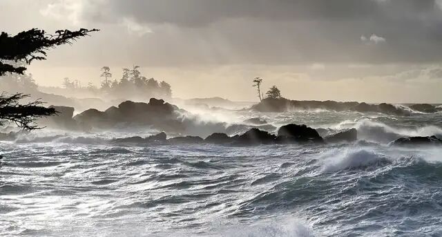 太平洋风暴是从阿拉斯加湾南下过来的低气压形成的,风速30-40节的强风抵达温哥华岛西海岸会掀起8-9米高的浪来,如果风速达到60节以上,则会有10-12米的巨浪!