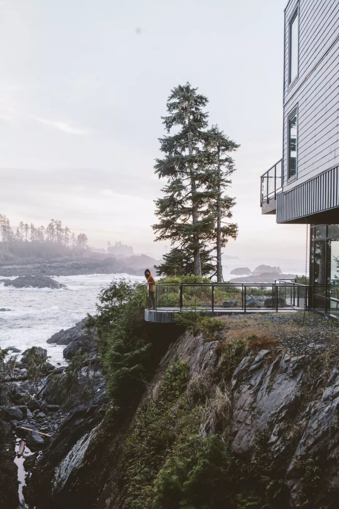 The Wickaninnish Inn位于高耸的岩石上,俯瞰的角度最好,在距离大海很近的同时还足够安全。只要你的房间是面朝大海的,那一定能看到大浪扑面而来的壮观场景,甚至不排除水雾会拍打到你的窗户上!