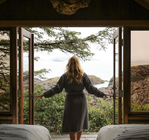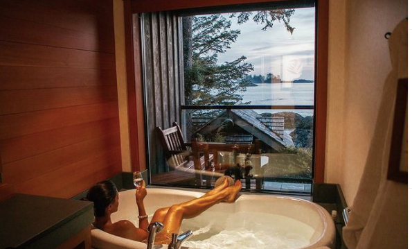 该酒店所在的切斯特曼海滩(Chesterman Beach)还入选英国《卫报》评出的“世界上最好的5个野生海滩”。酒店就坐落在托菲诺的海边,几乎所有房间都是大型的玻璃落地窗,你可以在炉火旁品着美酒,隔窗远望海天之间的汹涌波涛。