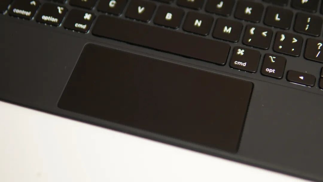 iPad Pro 的触控板也更加灵敏,三星便携键盘的触控板只有一半是可以按下去的,而妙控键盘的整个触控板都可以按压,这一点比较难得。