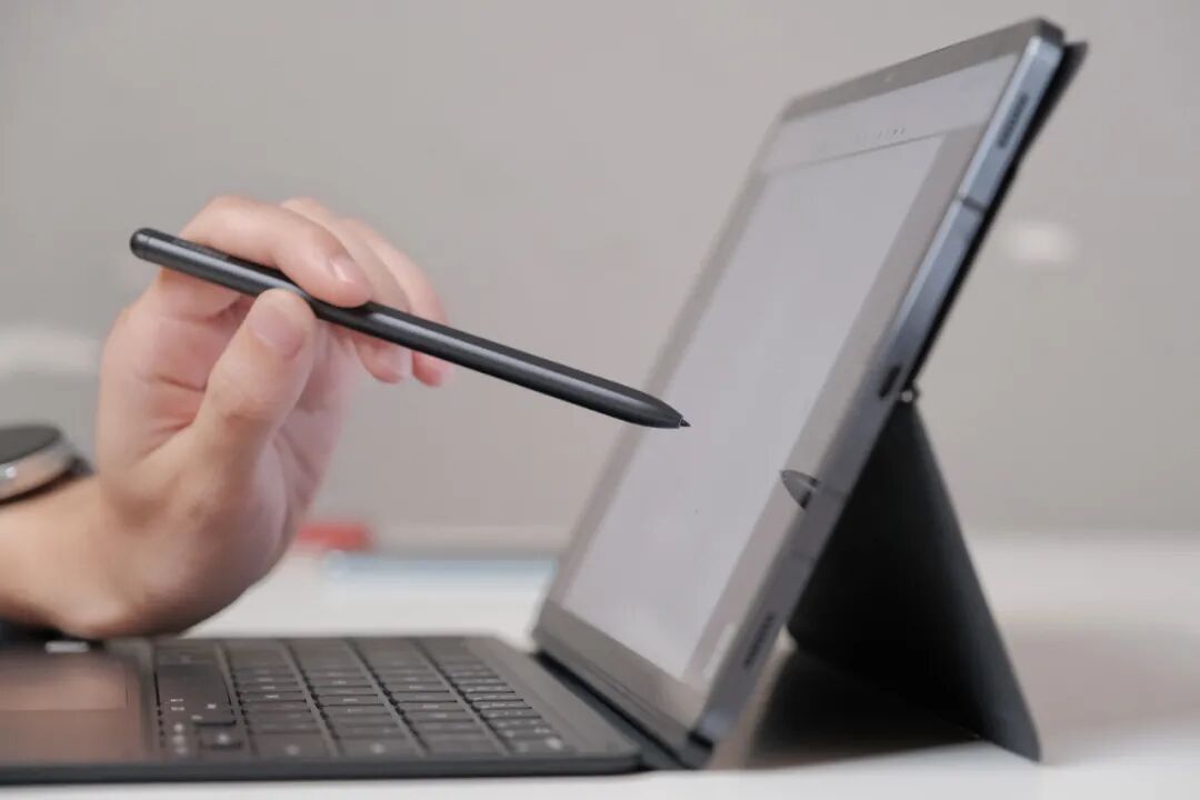 简而言之,S Pen 比 Apple Pencil 要轻很多,而且触控的体验非常奇妙,它会给你一种真的在纸上书写的感觉,你会觉得下笔的地方是有一点软的,而不是硬邦邦的屏幕。