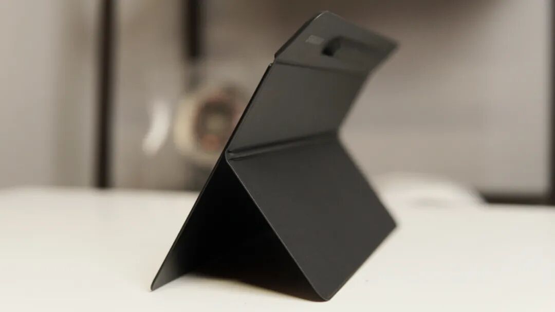 不过 Tab S7 的背面很有意思,这个吸附在机身背部的背板上下两个部分都能展开,下面是为了像 Surface 那样当做一个支架。