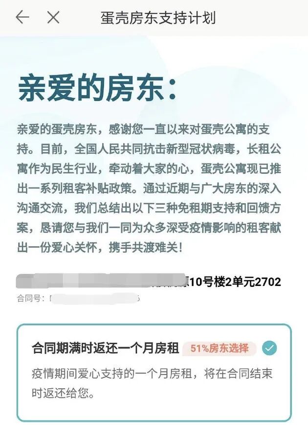 蛋壳要求房东免收租金的同时