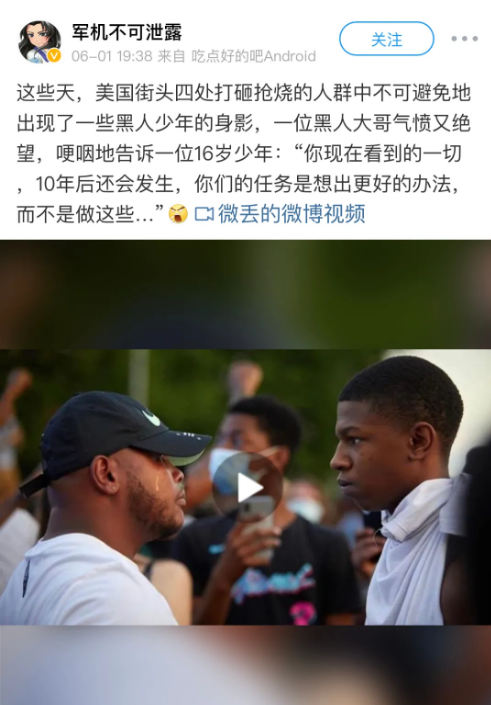 美国黑人世世代代重复着“黑人闹-白人哄-再闹-再哄”的命运。“黑人的命也是命”期间曾有一个视频冲上微博热搜: