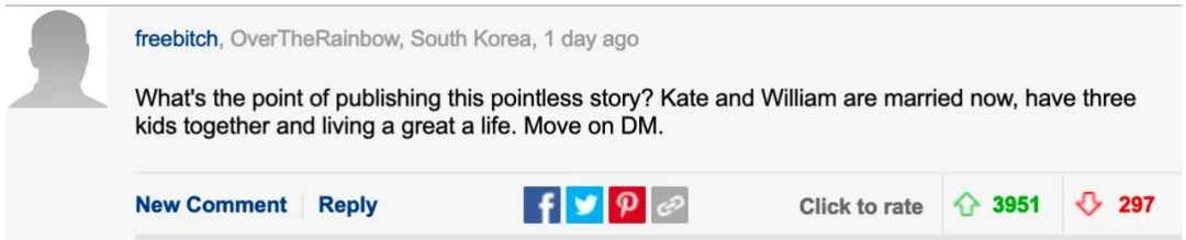 这次争议大家的重点都放在基于威廉和凯特感情和睦,还共同养育着三个孩子的现状下,《每日邮报》写这篇文章到底居心何在。