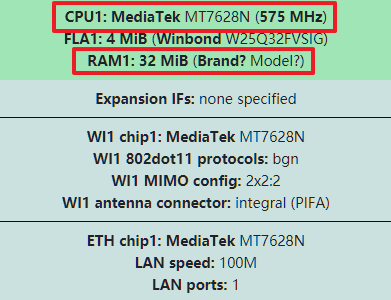 内存 32 MB ,使用单片机水平的 MIPS 处理器,只有两根天线。