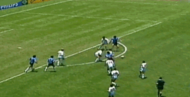 马拉多纳在阿根廷国家队有惊人的爆发力,1986年世界杯是他一个人的表演。对英格兰连过N人,进了史上最伟大进球,够吹一辈子↓↓