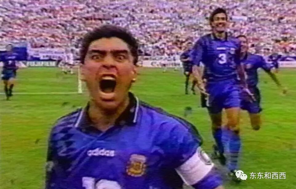 1994年美国世界杯,小组赛对阵希腊的比赛中,他状态癫狂。在踢进一球后,他对着看台上的摄像机疯狂尖叫↓↓