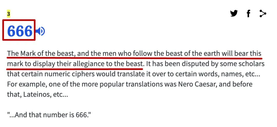 说 666 是“the Mark of the beast”(野兽的数字)。