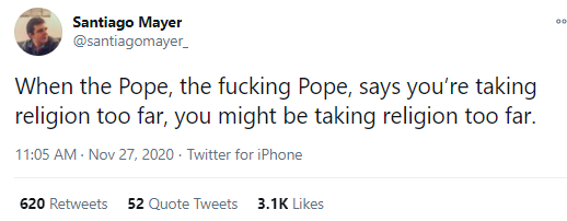 “教皇方济各的这篇文章感觉是已经将最高法院那5个狭隘滥用宗教自由的极端法官给打趴下了”,一位美国媒体人写道。