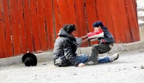 照片中的小孩拼尽力气想要把醉酒的父亲拉起来拖回去,看得人心疼。我们没办法选择自己的父母,不是人人都能生活在完美的家庭中。成年人也有被生活打垮,一败涂地的时候。但是当不幸的命运选择了这个孩子,幼小的身体却带着全部的爱与绝望,努力承担起一个大人的责任。而作为大人,我们有什么资格不去捍卫他们的世界呢?