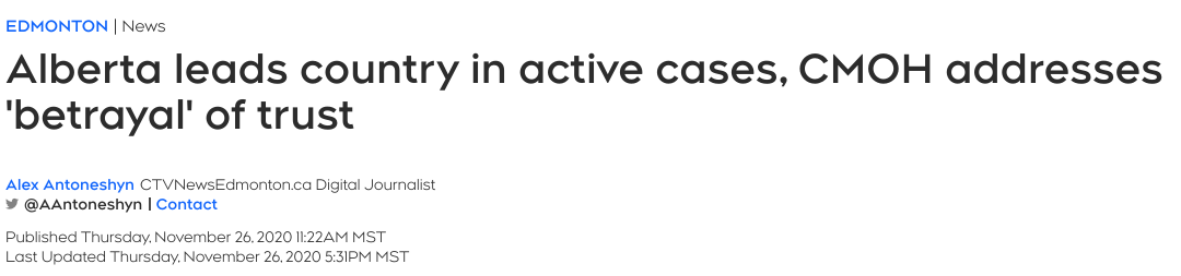 26号CBC发表了一篇文章,泄露了阿省防疫工作内部会议的内容,录音中显示阿省卫生官要求强制民众执行禁令,但与肯尼省长意见不合