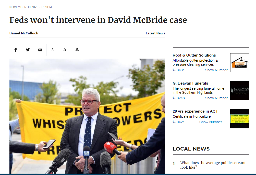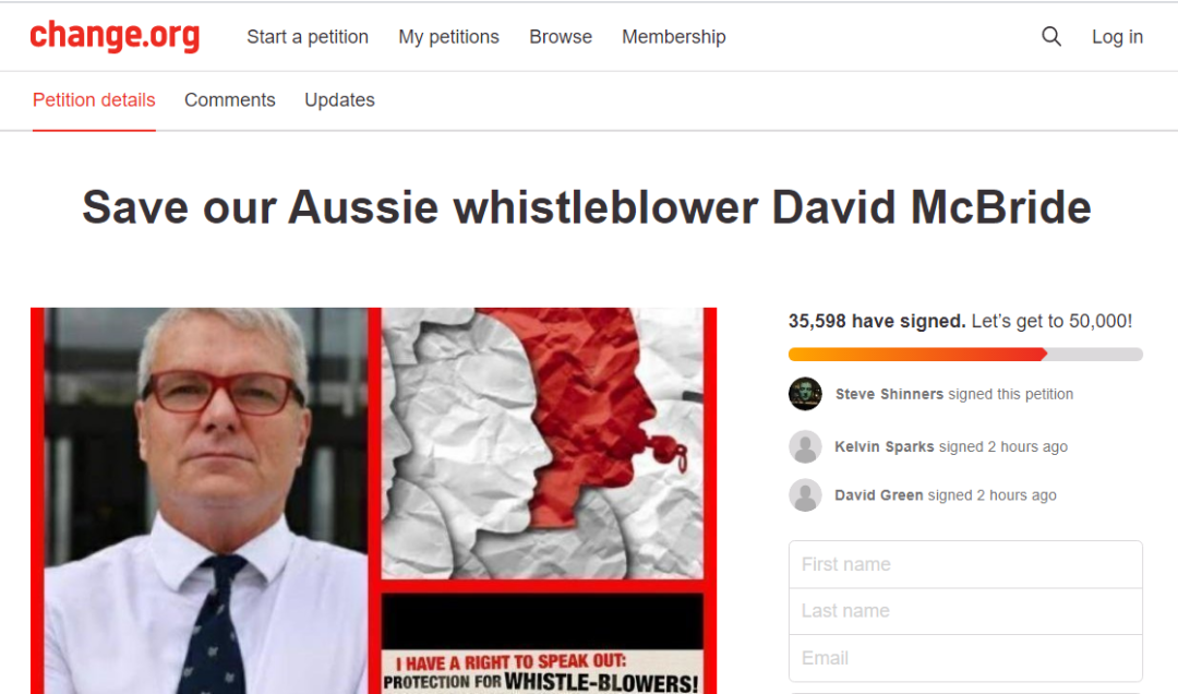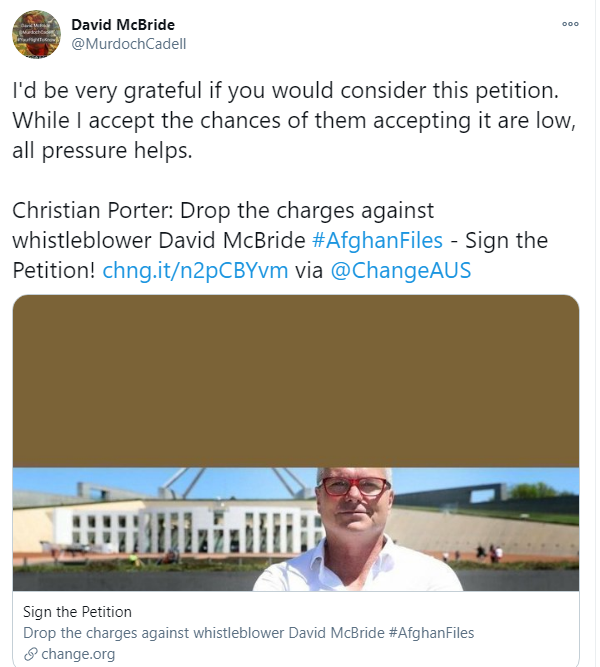 就在10月,澳大利亚司法机关决定不起诉和麦克布莱德一同披露有关资料的丹·奥克斯,但却并未对麦克布莱德做出同样的决定。11月23日,麦克布莱德还在个人社交媒体上转发了一则链接,希望网民能呼吁取消对他的所有检控。