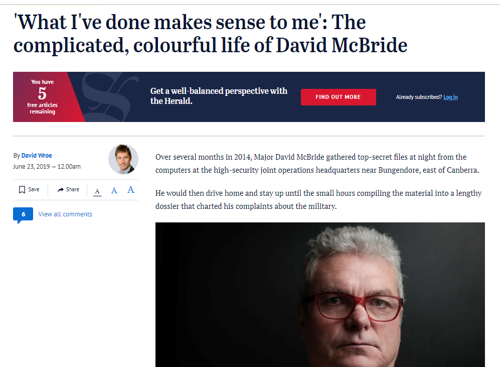 尽管大多数澳大利亚媒体最近的报道并没提到麦克布莱德的事迹,但笔者查阅各类资料发现,这位“吹哨人”此前的经历颇有一番传奇色彩。