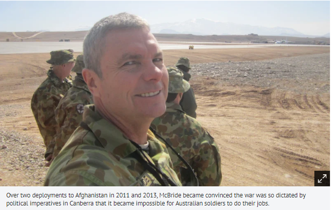 两次跟随澳军前往战场的麦克布莱德,听闻澳军疑似在当地有杀害平民等暴行后,就开始暗中关注了此事。2017年,麦克布莱德因为患有创伤应激后遗症而不得不退役。就在同年,麦克布莱德将自己掌握的许多证据交给了澳大利亚广播公司的记者丹·奥克斯。