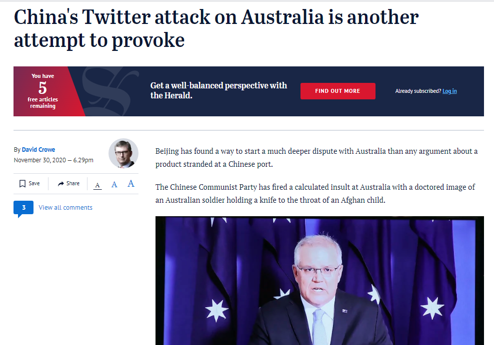 更滑稽的是,就在今天攻击我外交部发言人赵立坚转发讽刺图片时,还有许多澳大利亚政客和媒体辩称“该事件是澳大利亚人自己揭露的”,以此指责我们“作为外人”不应对其进行批评。