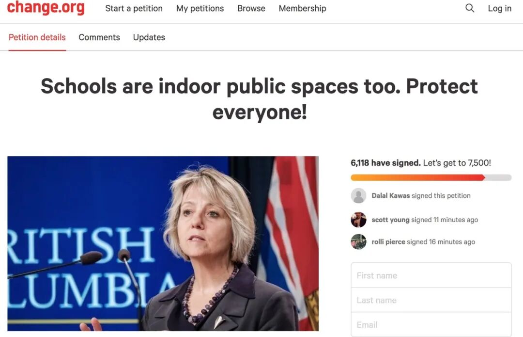 她们在Facebook上组建一个小组叫“BC STUDENT SICK OUT”,发起倡议让大家在12月1号(星期二)这一天,把孩子们留在家里,以此向省卫生厅抗议。担心请病假需要交检测报告的孩子们可以穿上红色的衣服表示支持。