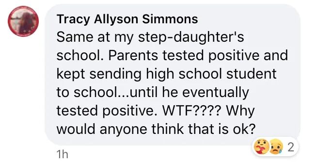 “福奇医生已经说了,不给无症状的人检测,就像在已经打滑的路面走下坡,而卫生官邦妮·亨利还在反复强调要保护隐私,所以不能公布染疫学校名单,但是学校还在使用同样的通风设施,教室人数也没有减少,让孩子们在家上网课的选择也依然很有限。老师们得到的消息太滞后了,更由于人手不足而被要求只有在出现多重症状时才可以去做检测……”
