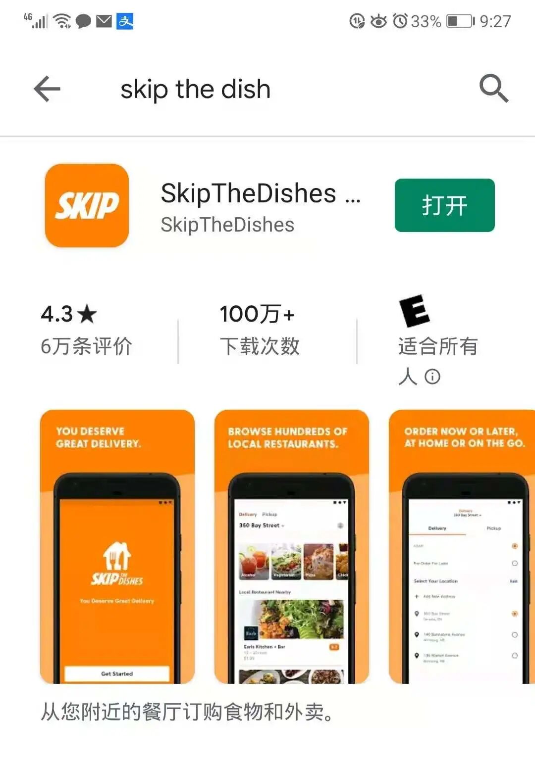平台优势:起源于萨斯克切温省,总部设在温尼伯,在加拿大算是主流英文外卖网站。定位功能确认所在地址后可以搜索附近餐馆。网页不仅显示送餐费,还有Skip The Dishes给该餐馆的综合评分。餐品大都都是西式快餐、咖啡、奶茶、糕点为主,但专门有一个中餐选项。配送费费大约在1.99到6刀加币之间,不高也不低,原本是线下线上支付都可,疫情期间,暂停了现金结算,全部需要网上支付。