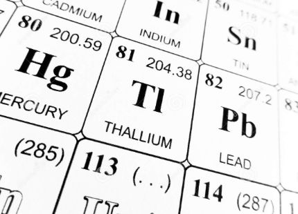 铊是一种对人体有毒性的金属元素,它的毒性高于铅、汞,对成人的最小致死剂量为12mg/kg。