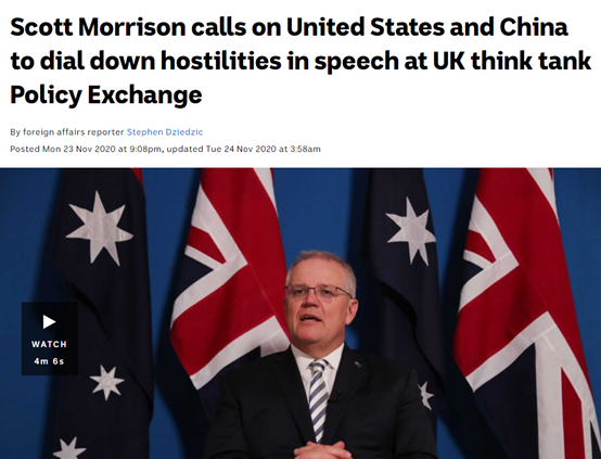 对此,澳大利亚广播公司这家澳大利亚的半官办媒体就认为,莫里森的意思是希望中美不要加剧对立,从而让澳大利亚在中间难做。俨然一副澳大利亚只是中美争斗的“受害者”的姿态。