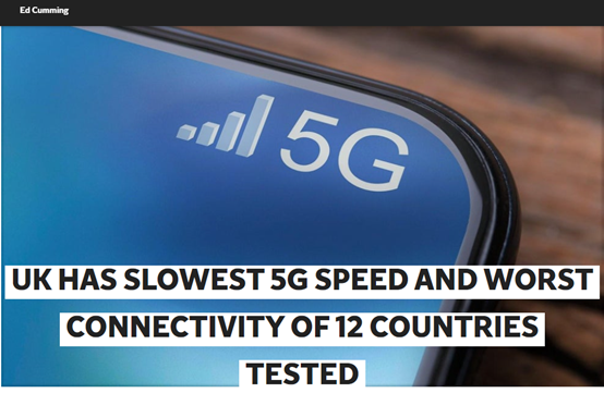 最后值得一提的是,英国《独立报》今年8月发布的一项包含欧美亚等12个国家和地区的网速调查显示,英国是其中5G网速最慢且网络最不稳定的,而沙特阿拉伯则在网速和稳定性上排名第一。