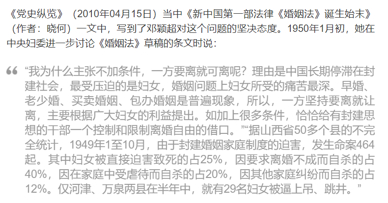 这些数据都是邓颖超坚决主张“一方坚持离婚可以离婚”的重要因素。