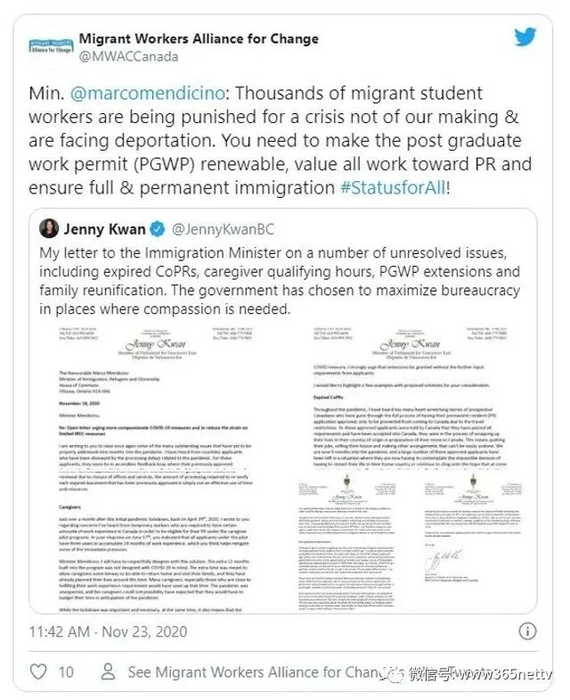 随后,来自加拿大各地的超过16000份签名的请愿书已经交至移民部长Mendicino手中。希望政府能够推出新政,帮助留学生们脱离困境。