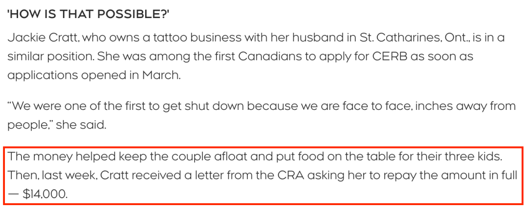 根据CTV的报道,所有人都感到非常崩溃和不公平,自己明明符合工资5000的标准,凭什么就要还钱呢?