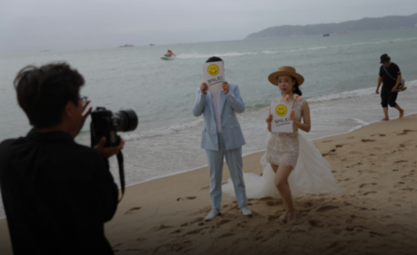 海南还有一个极具吸引力的特质——提供了“(疫情中的)正常感”。例如,30岁的夏女士和丈夫本来计划去泰国度假胜地普吉岛拍摄婚纱照,不过由于疫情没能成行,最终他们选择在三亚拍照,完成“在海边结婚”的心愿。而在亚龙湾的海滩上,这样的新婚夫妇比比皆是,几十对夫妇都正在精心准备拍摄婚纱照。