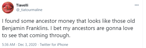 我发现了一些祖先钱,上面印着很像本杰明·富兰克林的头像,我相信我的祖先们看到这些会很高兴的。