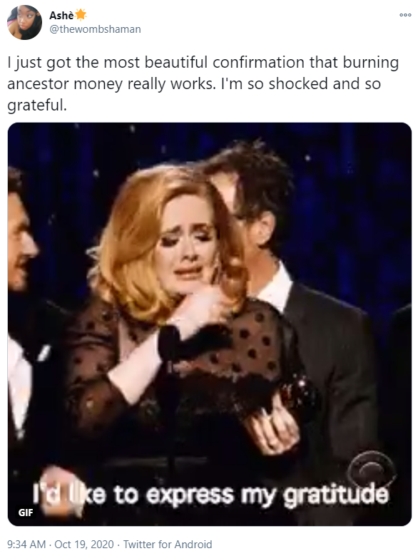 我刚刚得到了一个最好的确认:烧纸钱真的很管用,我很震惊,也很感激。