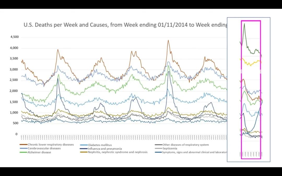 她最后得出结论,新冠并没有导致大规模的死亡,而如果仔细甄别新冠病逝者的病史,往往都患有多种基础病。