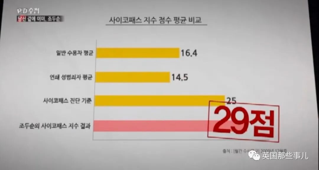 反社会人格障碍测试的分数更是高达29分,比连环杀人凶手还要恶劣….