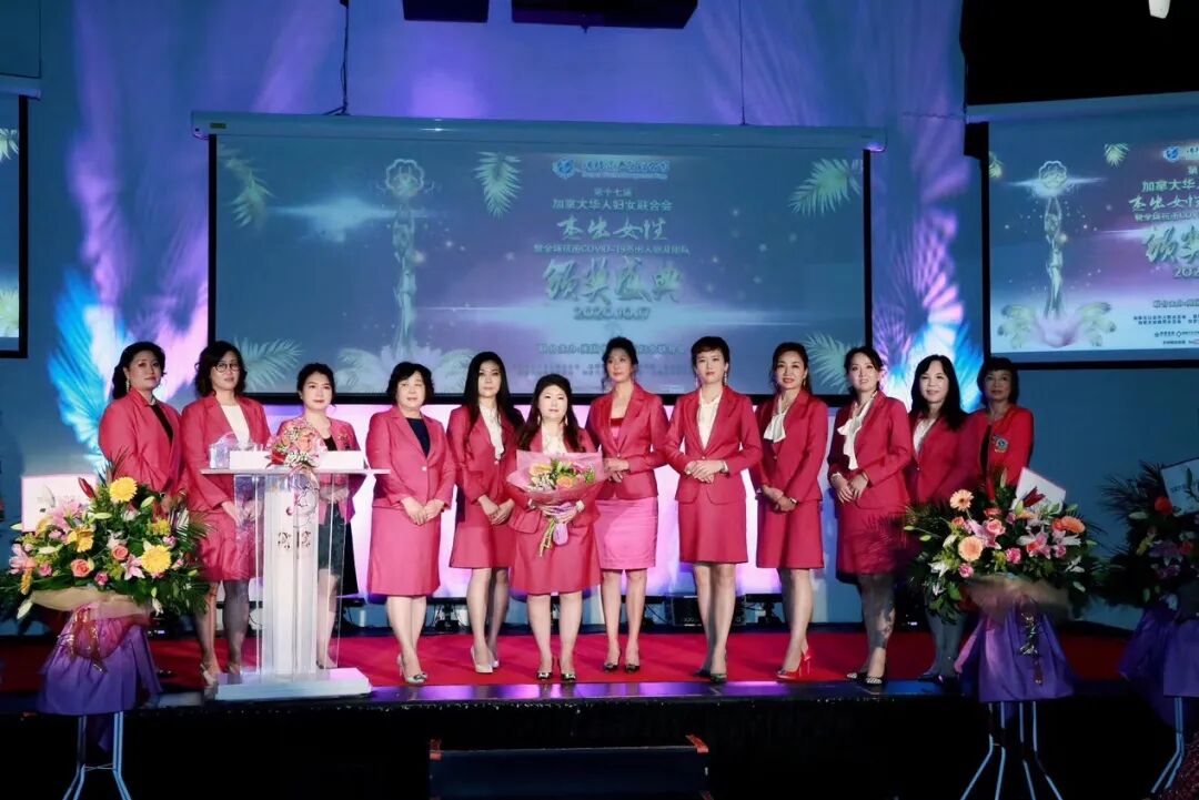 图为颁奖典礼上加拿大华人妇女联合会第九届理事会成员