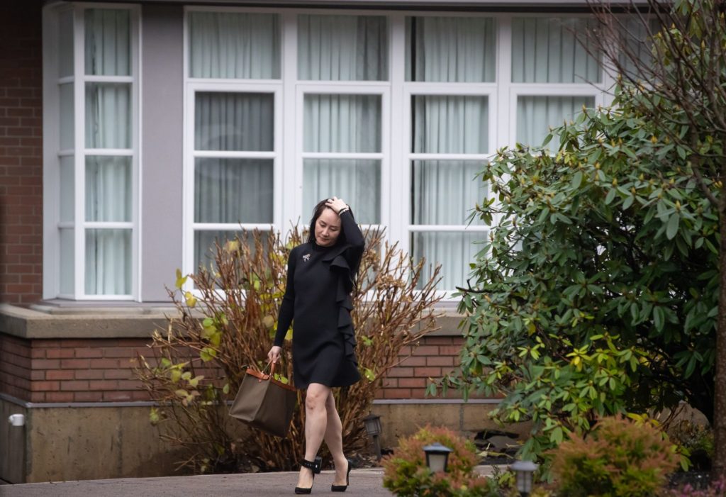 2020年12月9日,星期三,华为首席财务官孟晚舟离开家,前往加拿大不列颠哥伦比亚省最高法院参加听证会。THE CANADIAN PRESS/Darryl Dyck