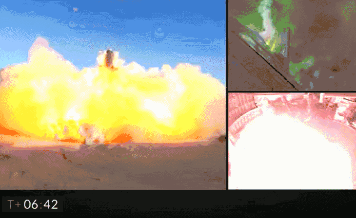 正当飞船准备着陆时,SN8撞向地面爆炸,瞬间整个飞船陷入火海,