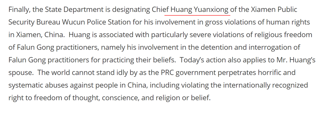 据多家外媒报道,美国国务院于本周四宣布了一批制裁国外官方人员的名单,其中包括一名来自中国厦门市的民警。