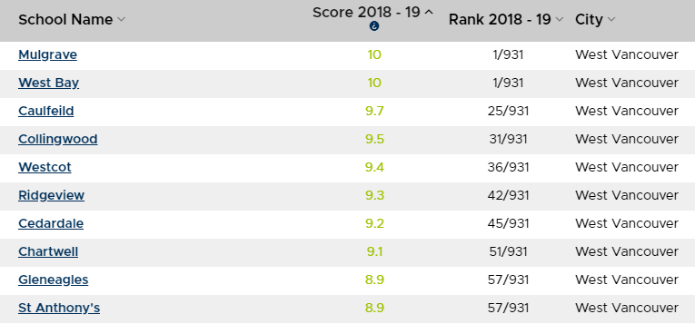 西温也有两所满分学校,分别是私校Mulgrave小学和公校West Bay,West Bay也是唯一一所满分的公校。
