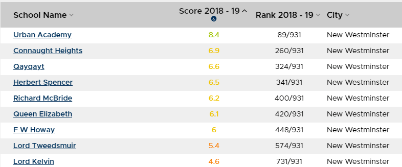 从2003年起,菲沙研究所对卑诗所有中小学进行排名,已经成为一年一度的惯例。