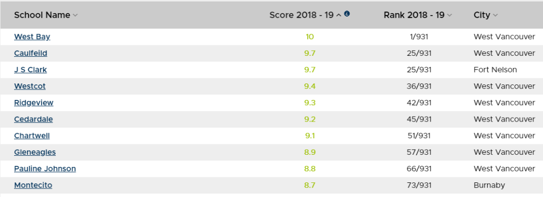 卑诗公立小学前10名的排行榜上,西温的小学就占了8名,再次傲视卑诗其它地区公校,其中West Bay小学更曾经多次拿到满分,看来,如果被追捧的公校,还是得去西温。