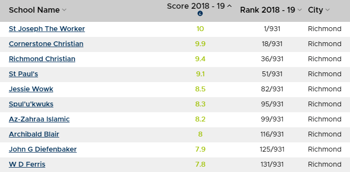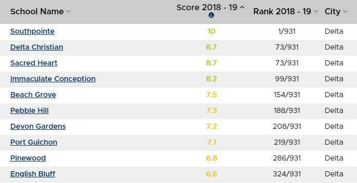 列治文和三角洲也分别有一所满分的私立小学,分别是St Joseph The Worker和Southpointe。