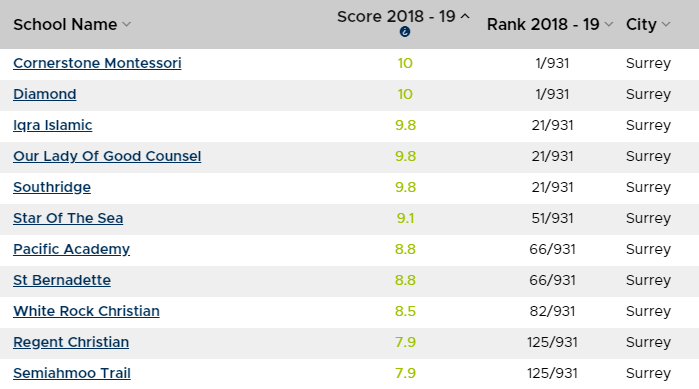 【加拿大乐活网lahoo.ca 王天林综述】受小学家长们关注,由菲沙研究所(Fraser Institute)发布的的2020年度卑诗小学排行榜于日前出炉,跟往年差不多的是,排名前10的,几乎都是西温的私校。17所满分小学里仍是私校的天下,只有一所公校。