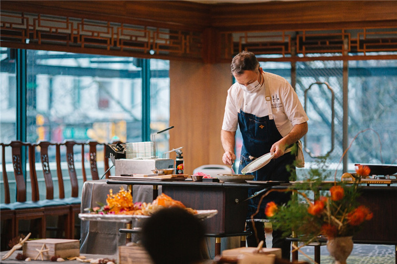 开业当天,福临门海鲜大酒楼携手加拿大名厨Hawksworth行政主厨 David Hawksworth 一道以“云开业”的形式为观众带来了一场精彩纷呈的中西厨艺创意表演,充分体现菜品“创新、融合、新中式”的定位同时也足以彰显疫情之下本地餐饮企业包容、开放、积极寻求出路的精神。