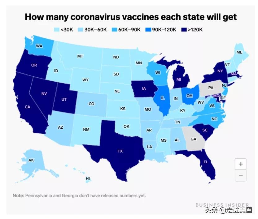 各州获申请到的疫苗剂量大概如下分配: